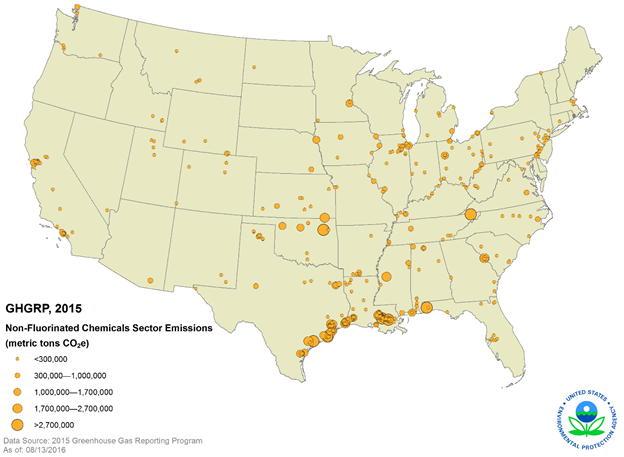 - Total Reported Direct Emissions from Chemicals (Non-fluorinated), by Subsector, (as of 8/13/16).